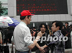 數(shù)十名國內(nèi)外媒體記者圍聚在法院門前,打探消息。法院對楊斌案的審理高度重視,法院大門處增設(shè)臨時(shí)警衛(wèi),不準(zhǔn)車輛?繓|西兩個(gè)大門附近。