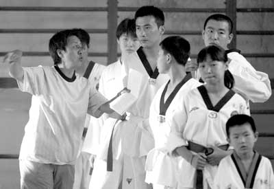 一大早,記者就趕到什剎海體校。道館外,一幫跆拳道館的學(xué)員們早已換好了行頭,等著他們的“同學(xué)”柳云龍的到來。盡管演員們還沒有來到現(xiàn)場,可是跆拳道館內(nèi)攝影、燈光、錄音等幕后工作人員卻已經(jīng)把一切準備工作完成?赡苁菐滋靵淼膭陬D,大家都休息不好,場邊的椅子上一個小伙子睡著了。劇組周小姐說:“我們今晚還要忙到夜里一點!彪m然這幾天非典疫情已經(jīng)得到控制,但是劇組為了防患于未然,還是立下了一個規(guī)矩:拍攝時,現(xiàn)場不得超過50人,而此前所有的人在進學(xué)校大門時已經(jīng)測過了體溫。