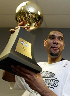這也是馬刺隊史上第二座總冠軍,鄧肯獲選最有價值球員(MVP)。鄧肯毫無意外拿下決賽最有價值球員獎,他在這個系列戰(zhàn)中,平均攻下二十四點二分,抓下十七個籃板,送出五點三次助攻以及五點三次阻攻,其中季后賽總阻攻數(shù)一百三十一次,刷新NBA季后賽紀(jì)錄,而今天單場八次阻攻,也追平了總冠軍賽單場阻攻紀(jì)錄。