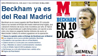 英國報紙指出,貝克漢姆轉(zhuǎn)會皇馬有眾多先兆
