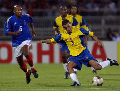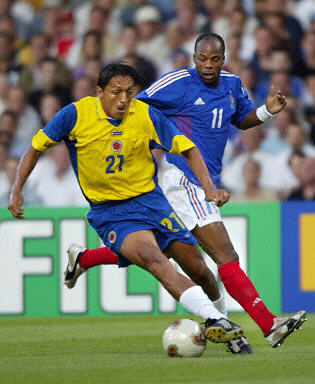 哥倫比亞隊目前正處于進球荒,在這場比賽之前,該隊已經(jīng)有5場比賽沒有入球。不過本場比賽面對衛(wèi)冕冠軍法國隊,他們卻絲毫沒有表現(xiàn)出弱隊的樣子。法國隊缺少了中場大將齊達內和維埃拉,球隊進攻組織有些凌亂。上半場,場上局面僵持,法國隊也只有一兩次像樣的進攻。