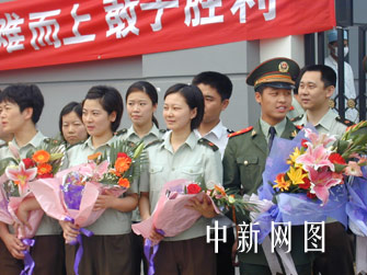 今天出院的病人,最大的65歲,最小的15歲。他們顯得特別興奮,一出院門(mén)就拼命向我們揮手,我把手里的鮮花獻(xiàn)給了一個(gè)女孩,她用不太標(biāo)準(zhǔn)的手勢(shì)向我敬了一個(gè)軍禮,“謝謝解放軍,希望你們也能趕快回家和親人團(tuán)聚!彼⑿Φ?fù)P起了臉,在陽(yáng)光下洋溢著健康的一張娃娃臉,我喜歡這張臉。