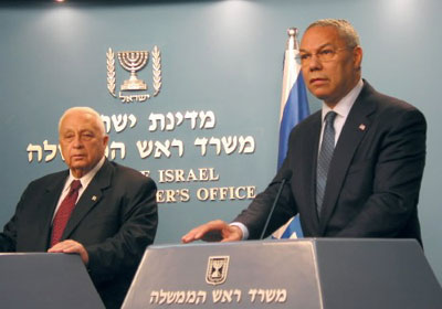 鮑威爾在會晤后與沙龍舉行的聯(lián)合記者招待會上表示,巴勒斯坦方面不能僅僅通過與巴激進組織達成;饏f(xié)議來停止暴力活動,而應該摧毀他們制造暴力的能力。鮑威爾還指責巴勒斯坦伊斯蘭抵抗運動(哈馬斯)是“和平的敵人”。
