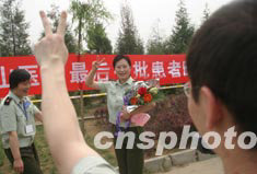 一位在北京小湯山醫(yī)院參與救治SARS患者的女軍醫(yī)在勝利撤離前,留下永生難忘的瞬間。中新社記者:史利
