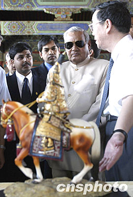 “這是很值得參觀的地方,”瓦杰帕伊說(shuō)。二十四年前,時(shí)任印度外長(zhǎng)的瓦杰帕伊第一次訪問(wèn)中國(guó)時(shí)曾到過(guò)故宮。今天,再次來(lái)到這里,瓦杰帕伊已是滿頭白發(fā)。