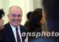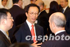 香港財(cái)政司司長(zhǎng)梁錦松,6月24日在禮賓府特設(shè)的酒會(huì)上,與六家在香港新設(shè)或擴(kuò)充業(yè)務(wù)的海外投資商交談甚歡。 中新社記者 洪少葵