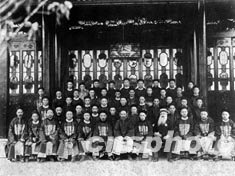 圖為1900年英國伯明翰造幣廠工程師(前排右四)訪華,佩戴中國清政府授予的“藍綬雙龍”勛章與官員合影。 中新社 圖