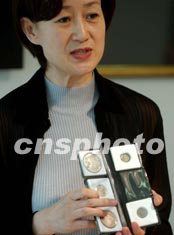 英國伯明翰造幣廠1898年受中國陜西省委托,試鑄了光緒元寶銀幣樣幣全套五枚,從海外回流北京閃亮登場,參加因抗擊非典延期在七月十一日舉行的華辰春季拍賣會,估價一百二十萬元人民幣。中新社記者:賈國榮
