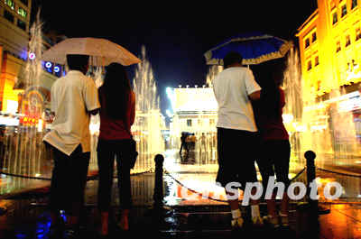 而更大規(guī)模的人群涌向了不同的地方。北京商委說,盡管下起了大雨,昨晚仍吸引了一百五十萬市民走出家門購物消費和休閑娛樂。其中,王府井商業(yè)街的顧客達二十萬人,西單商業(yè)街的客流突破三十萬人,宣武區(qū)三個主要商場及消夏夜市活動共吸引近二十五萬市民,朝陽區(qū)當晚各商圈客流達到三十四點三萬人,海淀區(qū)六家主要商場客流達二十二萬人……