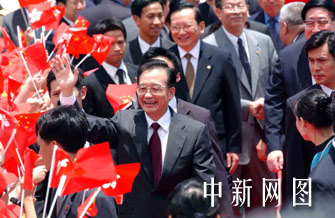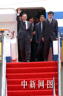 上午十一時(shí)四十分許,溫家寶乘坐的專(zhuān)機(jī)平穩(wěn)降停香港國(guó)際機(jī)場(chǎng)。他微笑著走出艙門(mén),向歡迎的人群揮手致意;在走下舷梯中途,他再度揮手。