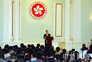 六月二十九日,國(guó)務(wù)院總理溫家寶在香港禮賓府發(fā)表講話,并強(qiáng)調(diào)中央政府毫不動(dòng)搖支持一國(guó)兩制。中新社記者 潘索菲 攝