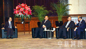 國務院總理溫家寶6月29日在下榻的酒店,會見香港工商界人士時,親切問候邵逸夫。洪少葵 攝