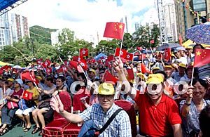 7月1日,市民以輕松愉快的心情,在維園舉辦大型慶祝香港回歸祖國活動中揮舞國旗,紀念香港回歸祖國。洪少葵 攝