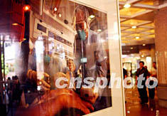 香港一家購物商場展出醫(yī)護(hù)人員醫(yī)治SARS病人的照片,提醒市民不可掉以輕心,預(yù)防病毒死灰復(fù)燃。洪少葵 攝