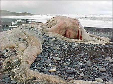 在正式認(rèn)定的100多種章魚中,最大的一種長達(dá)7米。智利海軍上周向鯨類保護(hù)中心報告發(fā)現(xiàn)兩條擱淺的鯨魚后,卡瓦雷拉便在周末趕到現(xiàn)場查看。其中一具尸骸是座頭鯨,另一具則完全是個大驚奇。他說:“我們從未見過如此奇特的生物體。”