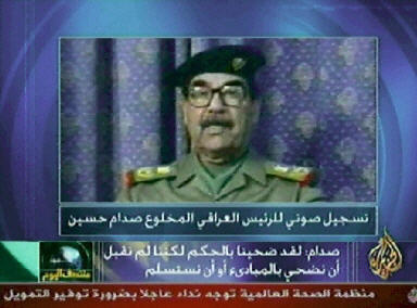 薩達(dá)姆在錄音帶中稱,在整個(gè)伊拉克,“由伊拉克男女戰(zhàn)士組成的圣戰(zhàn)組織已經(jīng)大規(guī)模形成”,他們正在對占領(lǐng)伊拉克的以美國為首的聯(lián)軍部隊(duì)進(jìn)行打擊。薩達(dá)姆請求伊拉克人保護(hù)抵抗美英聯(lián)軍占領(lǐng)的戰(zhàn)士,不要幫助美國“異教徒占領(lǐng)者”。