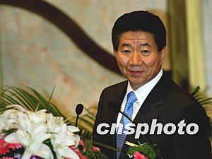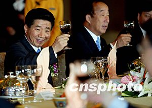 韓國總統(tǒng)盧武鉉八日在北京釣魚臺(tái)出席中韓經(jīng)濟(jì)界人士歡迎總統(tǒng)訪華午宴,中國貿(mào)促會(huì)會(huì)長萬季飛(右一)表示感謝并致歡迎辭。中新社記者:鄭萍萍