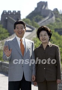 中新社北京七月九日電 (記者 朱大強(qiáng))來(lái)自友好鄰邦漢城青瓦臺(tái)的韓國(guó)總統(tǒng)盧武鉉走上了人民大會(huì)堂的紅地毯、登上中國(guó)長(zhǎng)城、在大學(xué)發(fā)表演講、接觸各界人士……三天的北京之行,馬不停蹄。