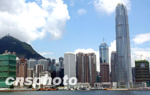 中新社香港七月十日電(記者陶社蘭)香港最高建筑物國際金融中心今天揭幕,此座高四百二十米、八十八層的建筑物也是排名全球第三的摩天大廈。