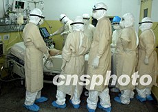 從7月4日至11日,由多名北京頂級醫(yī)療專家和二十名護士組成的醫(yī)療組在北京地壇醫(yī)院全力搶救一名年近六旬的男性SARS極其危重患者。地壇醫(yī)院目前有十九名北京市最后的SARS患者住院治療。中新社記者:任晨鳴
