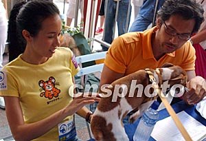 香港愛護動物協(xié)會七月十三日在香港舉行“寶寶健康快樂之星選舉”,由專業(yè)獸醫(yī)和知名人士擔任評判,香港歌星莫文蔚和藝員陳啟泰擔任嘉賓評判。中新社記者:錢興強
