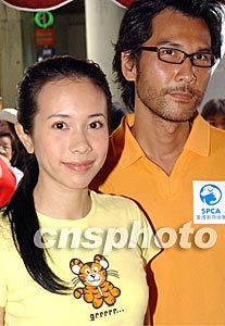 香港歌星莫文蔚和藝員陳啟泰,七月十三日出席在香港舉行的“寶寶健康快樂之星選舉”愛護動物活動。中新社記者:錢興強
