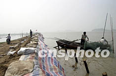 七月十三日,淮河第二次洪峰到達(dá)安徽淮南東風(fēng)湖,經(jīng)過當(dāng)?shù)亓Ф嗝窆ず兔癖灰沟膴^戰(zhàn),保證了十二日歷史最高的洪峰順利通過。圖為洪峰通過后短暫的平靜。中新社記者:盛佳鵬