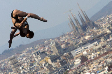 中新網(wǎng)7月14日電 在巴塞羅那舉行的第十屆世界游泳錦標(biāo)賽。中國(guó)跳水隊(duì)勞麗詩(shī)/李婷在女子雙人跳臺(tái)決賽中,以344.58分的總分為中國(guó)隊(duì)贏得本屆世錦賽的第一枚金牌。