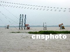 中新社洪澤七月十四日電 題:江蘇洪澤:三十八萬官民緊急抗洪