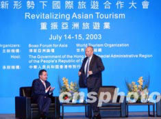 為期兩天的“新形勢下國際旅游合作大會”今天在香港開幕,這次國際會議由博鰲亞洲論壇和世界旅游組織聯(lián)合舉辦,主題為“重振亞洲旅游業(yè)”。董建華在開幕式上致辭。