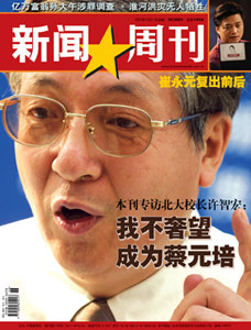 中新網(wǎng)7月16日電 北大的事就是中國的事,所以北大的5月到7月,不僅僅是在燕園,而是在全國引起了震蕩。下周一(7月21日)出版的中國《新聞周刊》就此事到北大“探營”。“我不敢奢望成為第二個(gè)蔡元培,”校長許智宏在接受中國《新聞周刊》采訪時(shí)說。
