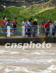 今夏淮河洪水淹沒千里漁米之鄉(xiāng)的魚塘,養(yǎng)魚農(nóng)民血本無(wú)歸。安徽省阜陽(yáng)縣的養(yǎng)魚農(nóng)民坐在洪水邊欲哭無(wú)淚。中新社記者:賈國(guó)榮
