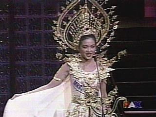 來自全球39位佳麗齊聚美國拉斯維加斯,為爭(zhēng)取2003年世界小姐的桂冠寶使出混身解數(shù)。來自泰國的蘇珊娜在機(jī)智問答中,以沉著穩(wěn)重的氣度舒展大將之風(fēng),她被問到的題目是為什么希望成為世界小姐,她回答:“因?yàn)槲抑来魃狭嘶使诰透队栉沂嬲宫F(xiàn)代女子的能力,無論在泰國、美國、或任何地方,展示出我們高貴有教養(yǎng),有能力,并展示我們很愛家人有高道德。”