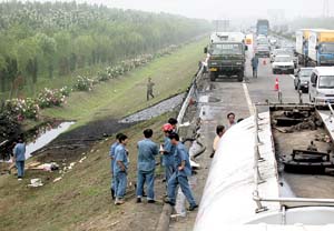 據(jù)悉,埋在高速公路下方涵洞里的輸油管道是北京目前惟一的供油管道。該管道直徑為529毫米,由大慶油田至秦皇島再通到北京,承擔(dān)著為燕山石化公司東方紅煉油廠輸送原油的重任。而北京市幾乎所有的生產(chǎn)生活用油用氣都是從這里面提煉出來。