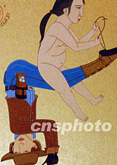 七月二十二日在香港藝術(shù)館舉行的“香港藝術(shù)雙年展2003”新聞發(fā)布會(huì)上,石家豪的作品《雙子俱樂(lè)部》(水墨設(shè)色金紙板八幅),獲優(yōu)秀獎(jiǎng)。 中新社記者:錢興強(qiáng)