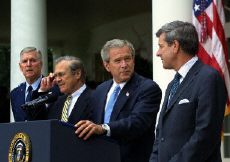 布什特別對駐伊軍隊(duì)的辛苦表示敬佩,對他們的美國家屬也表示感謝之意。