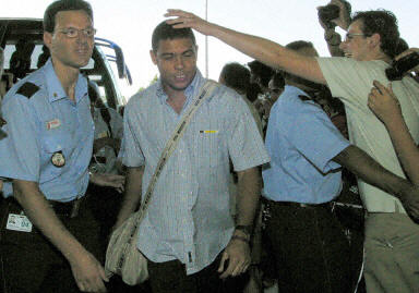 大批球迷到馬德里機場歡送皇馬亞洲之旅。羅納爾多受球迷“偷襲”。