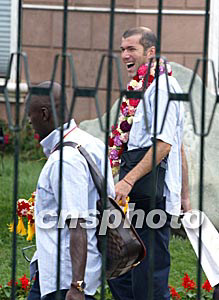 隨后下車的羅納爾多、齊達(dá)內(nèi)、菲戈、勞爾等巨星的號(hào)召力顯然不如剛剛加盟皇馬的貝克漢姆,圍在身邊的記者要少許多。趁此之機(jī),本社記者在第一時(shí)間采訪了菲戈,菲戈告訴記者,這是他第一次到中國大陸,感覺很不錯(cuò)。