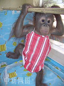 浙江今年經(jīng)歷了五十年一遇的高溫氣候。然而在飼養(yǎng)員的精心照料下,杭州動(dòng)物園里的珍稀動(dòng)物度過一個(gè)愜意的酷暑。圖為中國(guó)目前僅有二十余只的珍稀動(dòng)物紅毛猩猩正在舒適地享受空調(diào)。