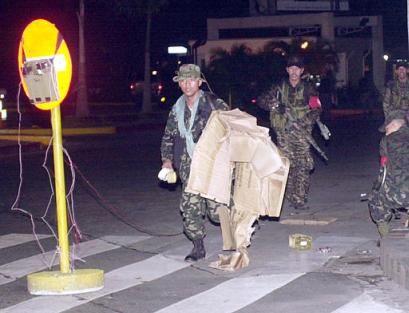 幾小時以后,數(shù)十名武裝軍人于27日凌晨占據(jù)了馬尼拉市金融區(qū)內的一座主要商業(yè)中心,并在周圍安放炸藥。