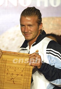 正在昆明訓(xùn)練的貝克漢姆等皇家馬德里足球隊(duì)成員被昆明市政府授予榮譽(yù)市民稱號(hào)。中新社記者:毛建軍