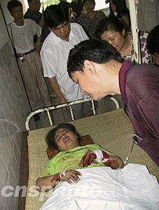 爆竹廠受傷女工羅正蓮在閩侯縣醫(yī)院接受救治,其在同廠打工的丈夫下落。中新社記者:劉可耕
