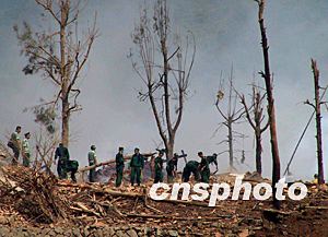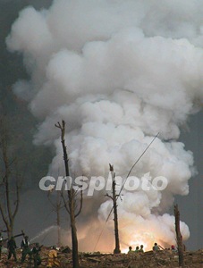 七月三十一日上午七時(shí)四十分,福建閩侯縣荊溪鎮(zhèn)一私營煙花爆竹廠發(fā)生爆炸,造成重大傷亡。爆炸面積約一千五百平方米,現(xiàn)場一片廢墟。武警、消防、公安、當(dāng)?shù)伛v軍及醫(yī)護(hù)人員,當(dāng)?shù)攸h政官員在現(xiàn)場全力搜救。中新社記者:劉可耕