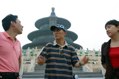 張藝謀:這可不是我說(shuō)的,我個(gè)人當(dāng)然愿意,但這得組委會(huì)任命,不是我說(shuō)了算。我想,能導(dǎo)演奧運(yùn)會(huì)的開(kāi)幕式是每一個(gè)做導(dǎo)演的榮幸。我除了電影外,最近做了許多公益宣傳片,其實(shí)也讓我學(xué)到了不少東西。這場(chǎng)會(huì)徽的發(fā)布,我就是想通過(guò)“全民參與”的形式來(lái)體現(xiàn),抓好了其中的幾個(gè)感情點(diǎn),做到“以情動(dòng)人、感情暖人心”,以人為本,表達(dá)出人的感情,駕馭起來(lái)就不會(huì)那么困難,因?yàn)閮H僅有一些藝術(shù)家的歌舞表演,是不夠的。對(duì)了,我不能講那么多,再講我就漏了;氐竭@次會(huì)徽發(fā)布儀式上,我想通過(guò)祈年殿這個(gè)中心舞臺(tái),強(qiáng)調(diào)“五環(huán)”,利用體育運(yùn)動(dòng)來(lái)表達(dá)出那種奧林匹克精神與傳統(tǒng)文化相結(jié)合的感覺(jué),這次我們首次動(dòng)用了“高空索道”,第一次使用高機(jī)位,進(jìn)行全新的轉(zhuǎn)播,肯定一種用意,就是要代表著古老的中國(guó)走向世界,闡述2008年奧運(yùn)會(huì)的會(huì)徽理念。再者,中國(guó)的觀眾都是看“晚會(huì)”過(guò)來(lái)的,他們看晚會(huì)的水平很高,我們就是要通過(guò)這種運(yùn)動(dòng)形式的演出,得到觀眾的肯定。撰文信報(bào)記者朱偉東