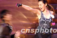 日前,在香港舉行的2003年度香港小姐競(jìng)選準(zhǔn)決賽上,進(jìn)入十二名佳麗行列的王從希,在準(zhǔn)決賽現(xiàn)場(chǎng)表演精彩的“少女武功”。中新社記者:錢(qián)興強(qiáng)