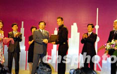 享有“拉丁王子”美稱(chēng)的國(guó)際巨星瑞奇·馬丁(右三)四日成為“上海友好大使”,并獲得上海贈(zèng)送的“上海城市金鑰匙”。瑞奇·馬丁是“國(guó)際名人上海行”的第一位嘉賓。作者:劉殊瑾