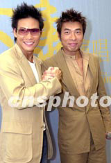 歌星許志安、蘇永康8月4日出席其《香港安康演唱會(huì)》記者會(huì),兩人信心十足合力演好《香港安康演唱會(huì)》。中新社記者:鄧慶樂