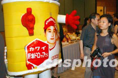 由香港貿(mào)易發(fā)展局主辦的香港美食博覽會(huì),八月五日在香港舉行新聞發(fā)布會(huì),超過(guò)170多家來(lái)自香港、內(nèi)地及海外的食品制造商,將展銷(xiāo)食品和飲料以及中醫(yī)藥健康食品。圖為發(fā)布會(huì)上參展商促銷(xiāo)。中新社記者:錢(qián)興強(qiáng)
