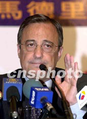 “皇馬”主席佩雷斯7日在香港記者會(huì)上,就球員6日晚未能參加在大球場(chǎng)的操練,公開道歉,他解釋問題出于缺乏溝通。中新社記者:鄧慶樂