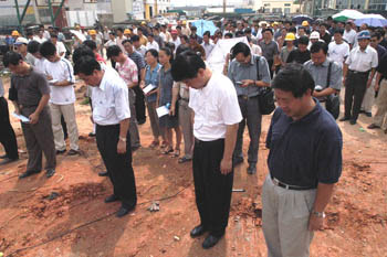 張昌平市長、潘世建副市長、徐模副市長等全體參加會議人員向7位死難者默哀。